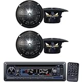 Pyle Marine Radio Receiver and Speaker Package - PLCD33MR AM/FM-MPX IN-Dash Marine CD/MP3 Player/USB & SD Card Function - 2x PLMR41B 2 Pairs of 4'' Dual Cone Waterproof Stereo Speaker SystemCheck out this fully equipped marine stereo headunit receiver from Pyle! It's equipped with a dual-band radio (AM/FM), CD player, USB drive, and SD slot for digital music playback. Plus, you can hook up an external MP3 player using the front-panel 3.5mm aux jack. 3-beam laser tracking and 8x oversampling on the CD mechanism ensure the highest quality playback. Display shows relevant track info, including minute and seconds. Store up to 30 radio station presets. Anti-skip mechanism prevents track skipping even on the bumpiest trips. This headunit pushes 50 watts on each of four channels for a total of 200 watts maximum. The face of the unit is detachable and storable in an included carrying case. Includes a fully functional remote control. Color: black. We have also added the PLMR41B 4'' Dual Cone Waterproof Stereo Speaker System. Pyle's Hydra series speakers are waterproof and designed for use in your boat, on the dock, by the pool, or simply mounted outside. They're designed with rust-proof mesh covers for quality protection. The PLMR41B is a pair of black 4" dual-cone, full-range speakers suitable for marine or car door use. The polypropylene cone accurately reproduces sound, and the molded ABS plastic basket keeps your sound distortion-free. Package includes mounting hardware and wires. Product Dimensions: PLCD33MR - 7''W x 7''D x 1.96''H